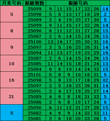 把上期开出的红蓝球近三期的跟随号统计后,跟随大于2次的号就可以重点关注: