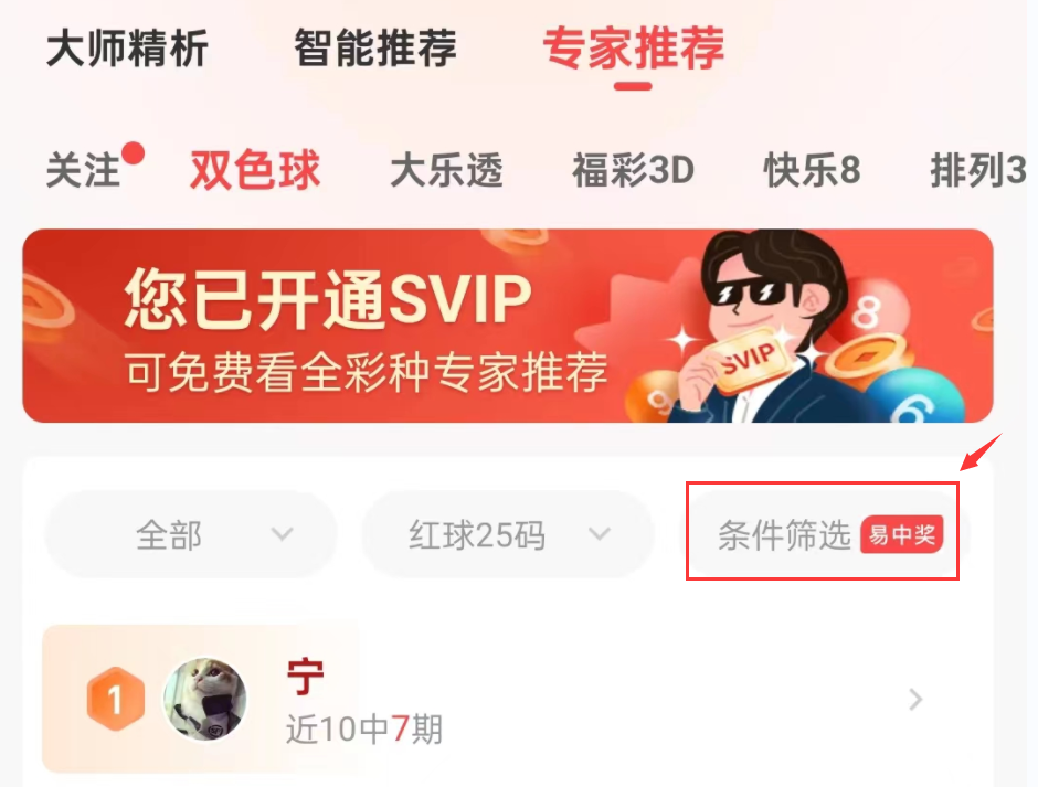 我们点击“专家推荐”,进去。如下图,点击“条件筛选”