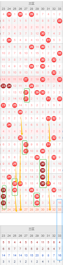 双色球三区上期开出两个奇数号23、29号,罕见的和前一期一模一样的数字,近五期连续两期开出四码,较之前大多为两码的趋势说明三区逐渐开始走热了,本期仍然可以考虑开出2码或及以上。