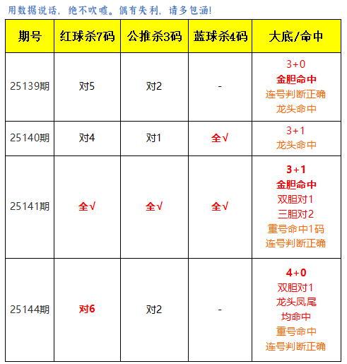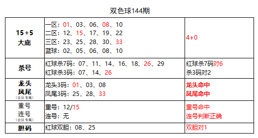 上期红球杀7码对6,公推杀3码对2,会员文章中双胆对1,龙头凤尾均命中,重号命中,连号判断正确,上期红球命中4码。本期再接再厉!