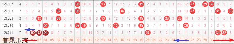 如图所示:首尾制约平衡组范围依次为:推拉推,推拉? 本期形态范围优先选择红色拉伸首尾。由于上期号码已经进入新走势第2期,目前处在新走势第3期,利用常规起号形成拉伸还是左推就是走势正反方向。