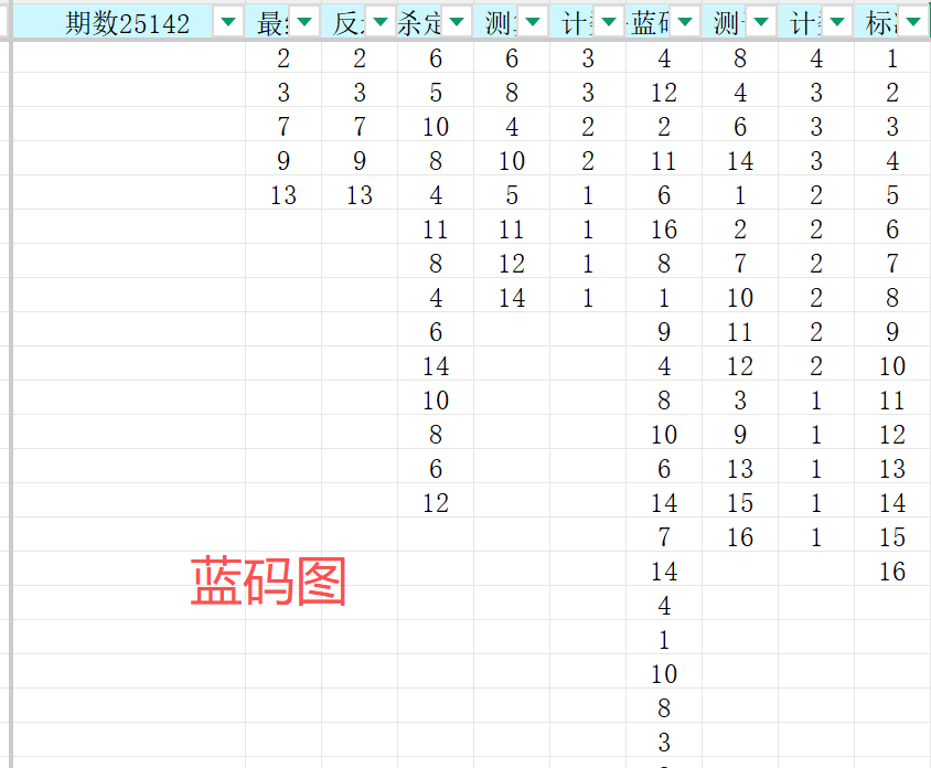 首先可以看一下蓝码的对比结果通过两个图表数据的对比,我们把蓝码的范围确定为2 3 7 9 13