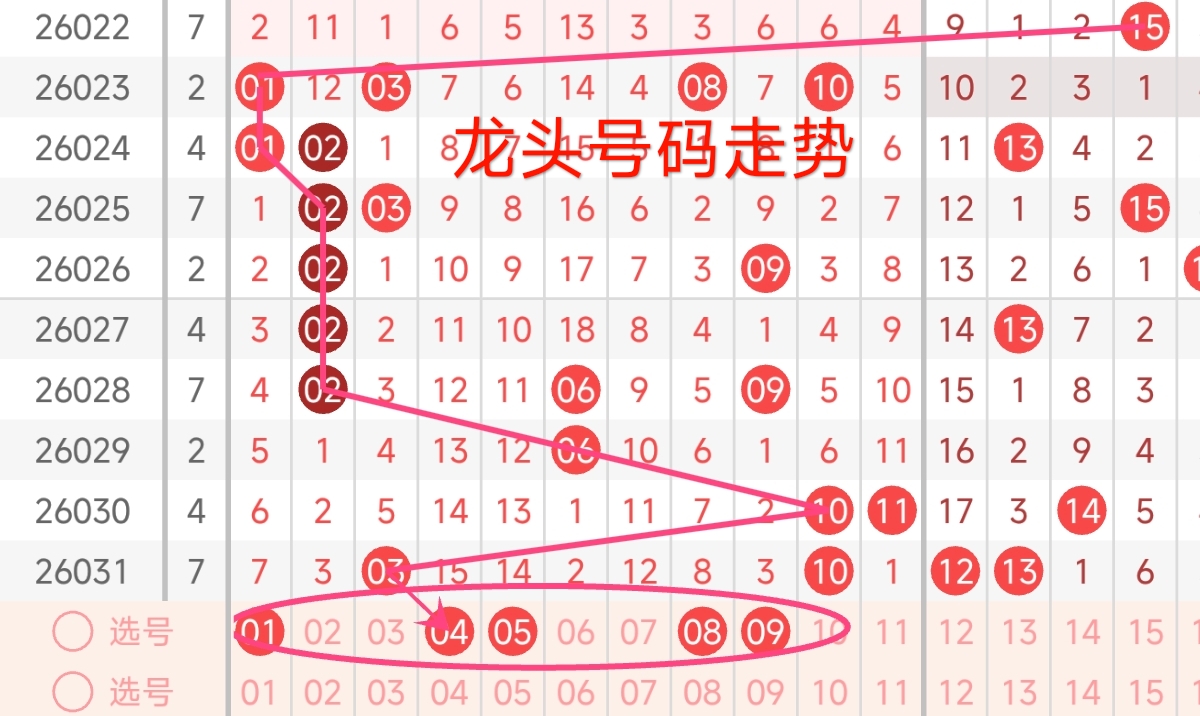 上期龙头号码为03,振幅下降了7点,开出奇数号码。从近期龙头号码走势来看,近期龙头号码波动频繁。上期龙头号码为03,近期龙头整体呈现出明显的小号偏好,前期曾有连续多期稳定在低位的情况,上期龙头号码回落至低位区间,打破了之前短暂的上行趋势。预计本期龙头大概率会小幅上行,但不会突破红一区关口,重点关注01-10区间的号码,符合冷热交替的出号规律。综合考虑,本期龙头号码可重点关注01、04、05、08、09。