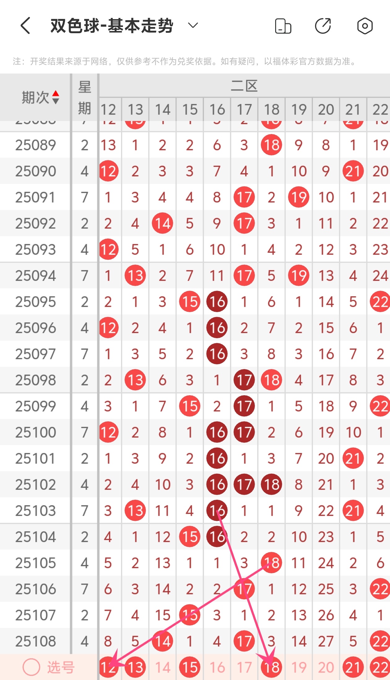 下面双色球的第二区间走势图分析: