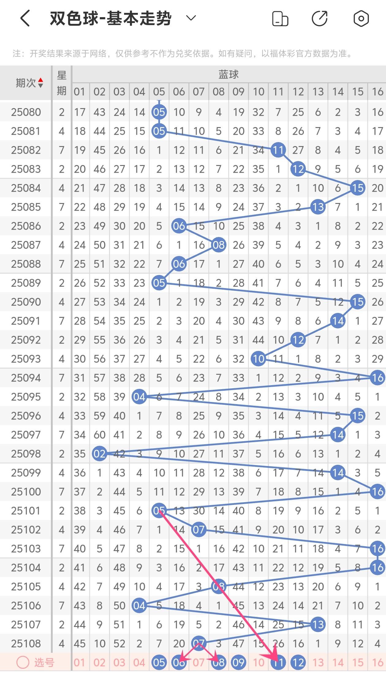 下面双色球的蓝球走势图分析: