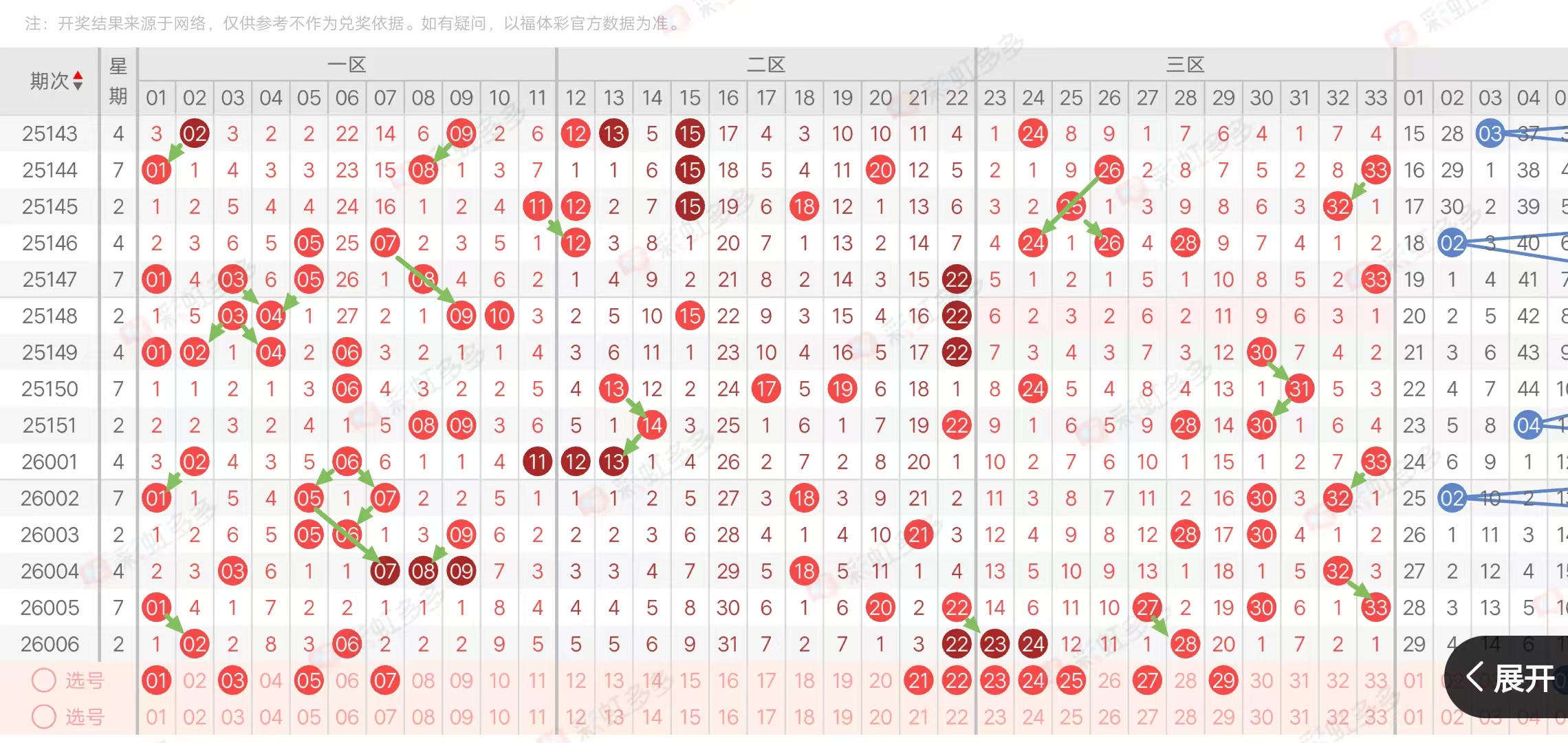 (三区:一区1-11,二区12-22,三区23-33)上期三区比2:1:3