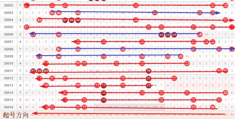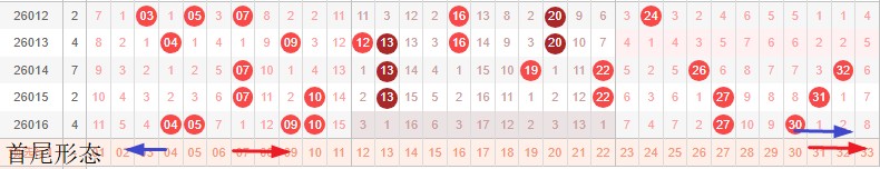 如图所示:首尾制约平衡组范围依次为:缩缩推,缩推? 本期形态范围优先选择红色右推首尾。由于上期号码已经进入新走势第3期,目前处在新走势第4期,利用常规起号形成拉伸还是推进就是走势正反方向。