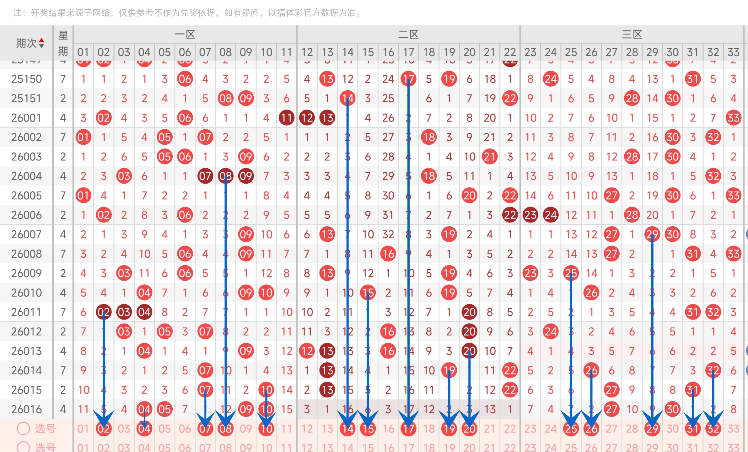 红球推荐:2,4,7,8,10,14,15,17,19,20,25,26,29,31,32。