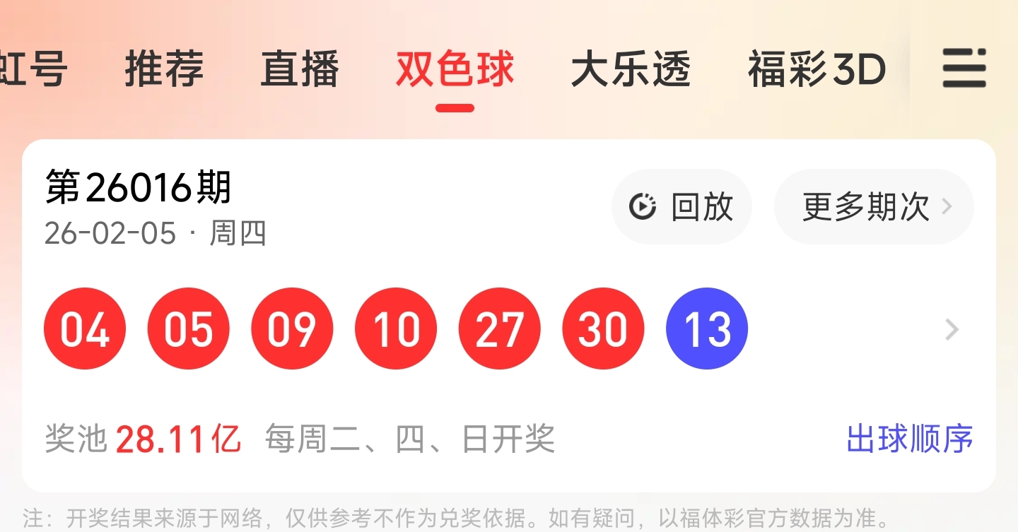 第26016期双色球文章中推荐中命中4,5,9,30等4个红球。