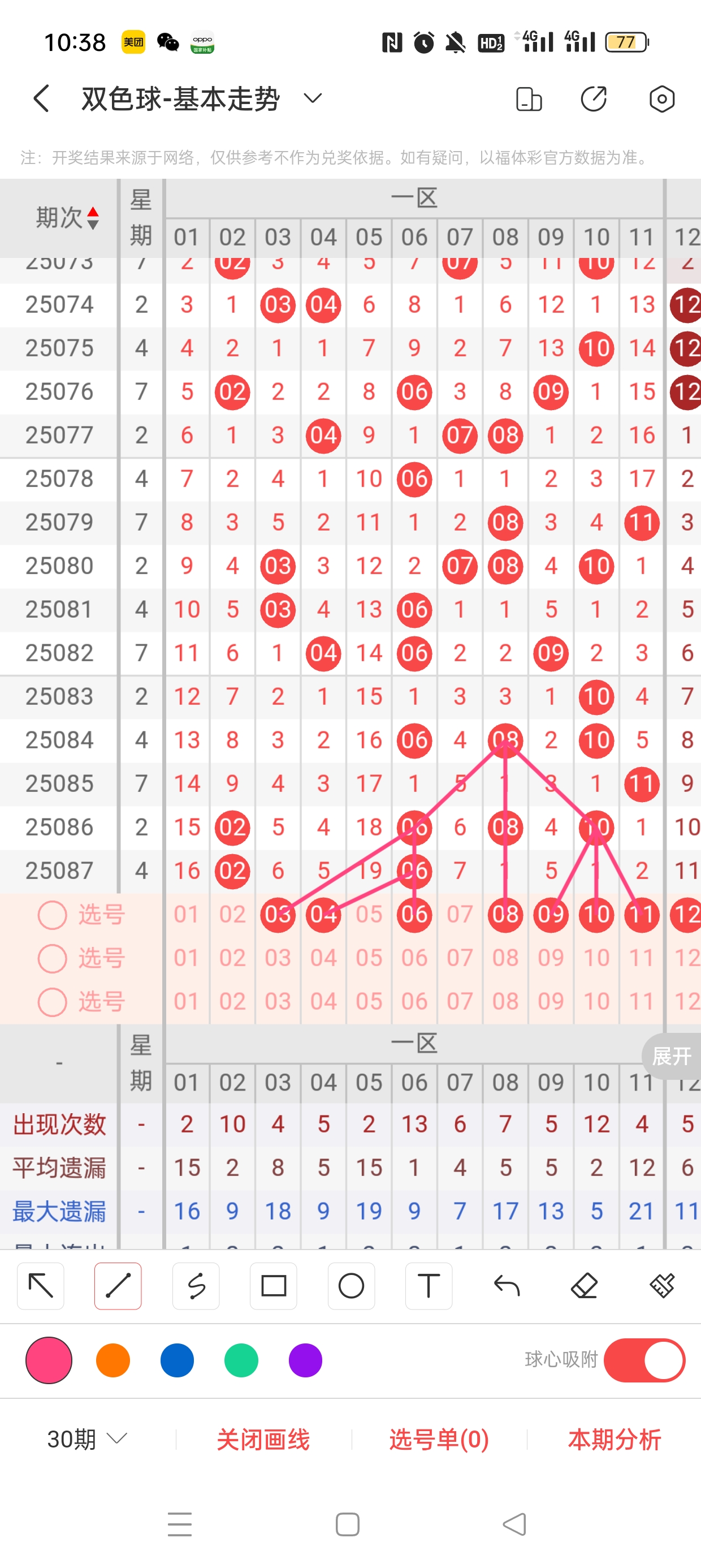 近5期第一位号码012路对比:1:0:2:2:2,2路热度高,本期着重0/1路。邻孤传1邻4孤0传,孤号热度高,本期着重邻传。
