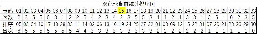 红球15码大底统计顺序:05,03,04,10,17,18,33,11,14,02,06,13,19,24,25