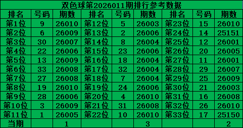 上期三区开出2个号码是在:第23、33位,热温冷比例:1:0:1