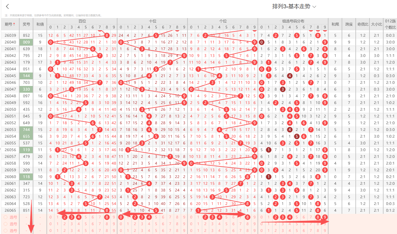 ③个位:上期开出小号奇数1号,上期出现奇偶互变为奇数1路号码,根据历史记录012路及奇偶周期性规律变化的特征特点本期2路号码有开出的趋势0路号码注意预防。