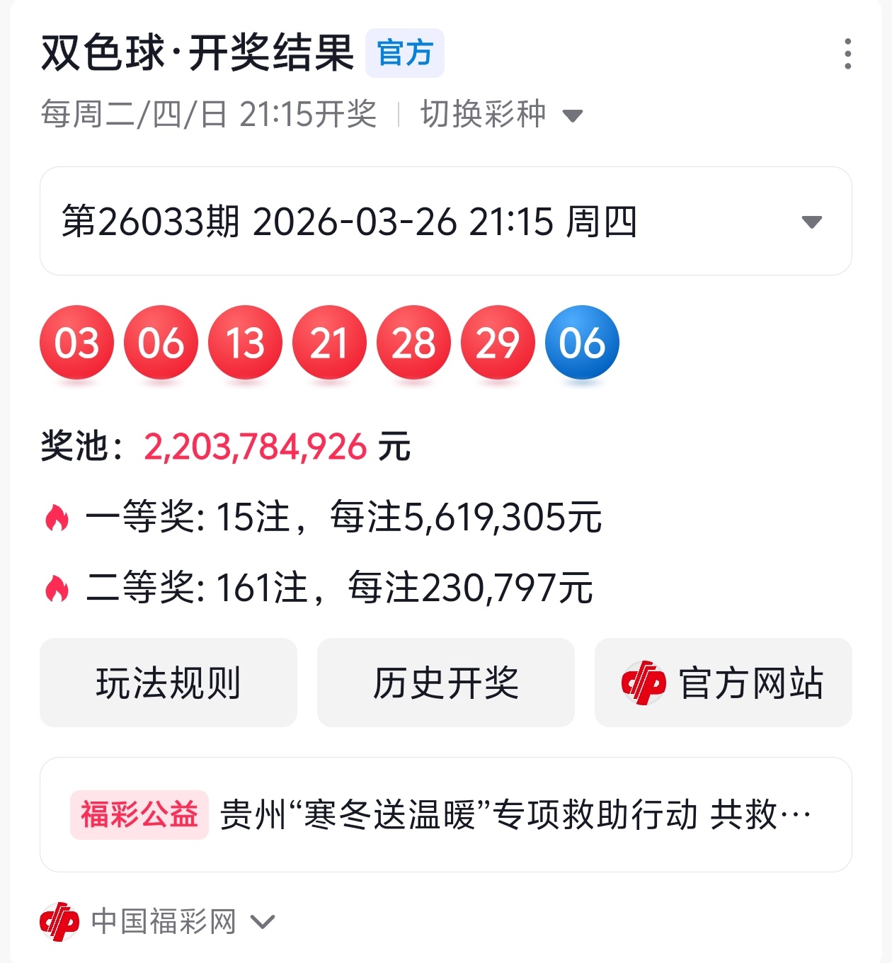 下面是我对2026034期福彩双色球的分析和预判,希望通过我的分析能让大家今晚大红!福彩双色球上期开奖号码如下图: