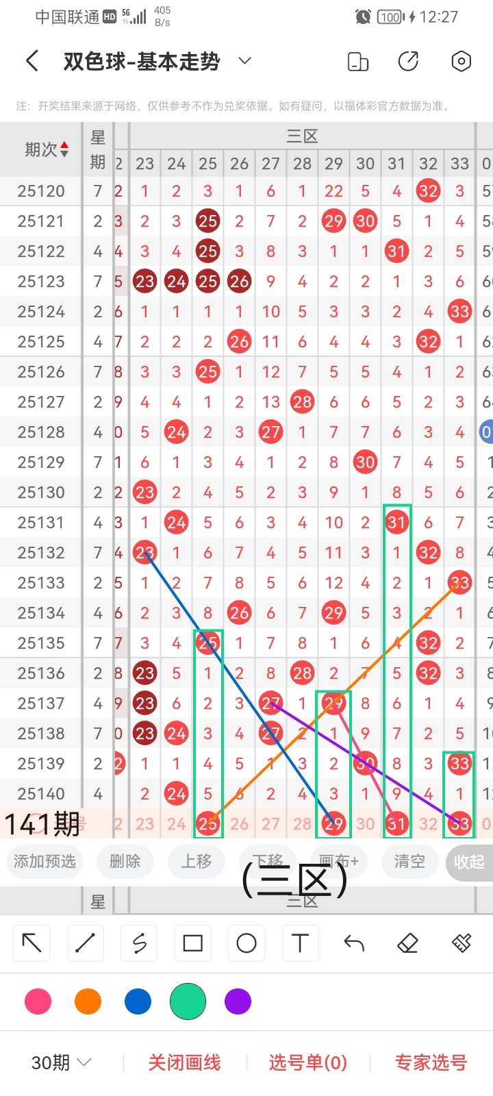 通过以上对上期的简单回顾,下面进入双色球第2025141期(下面简称本期)的选号分析: