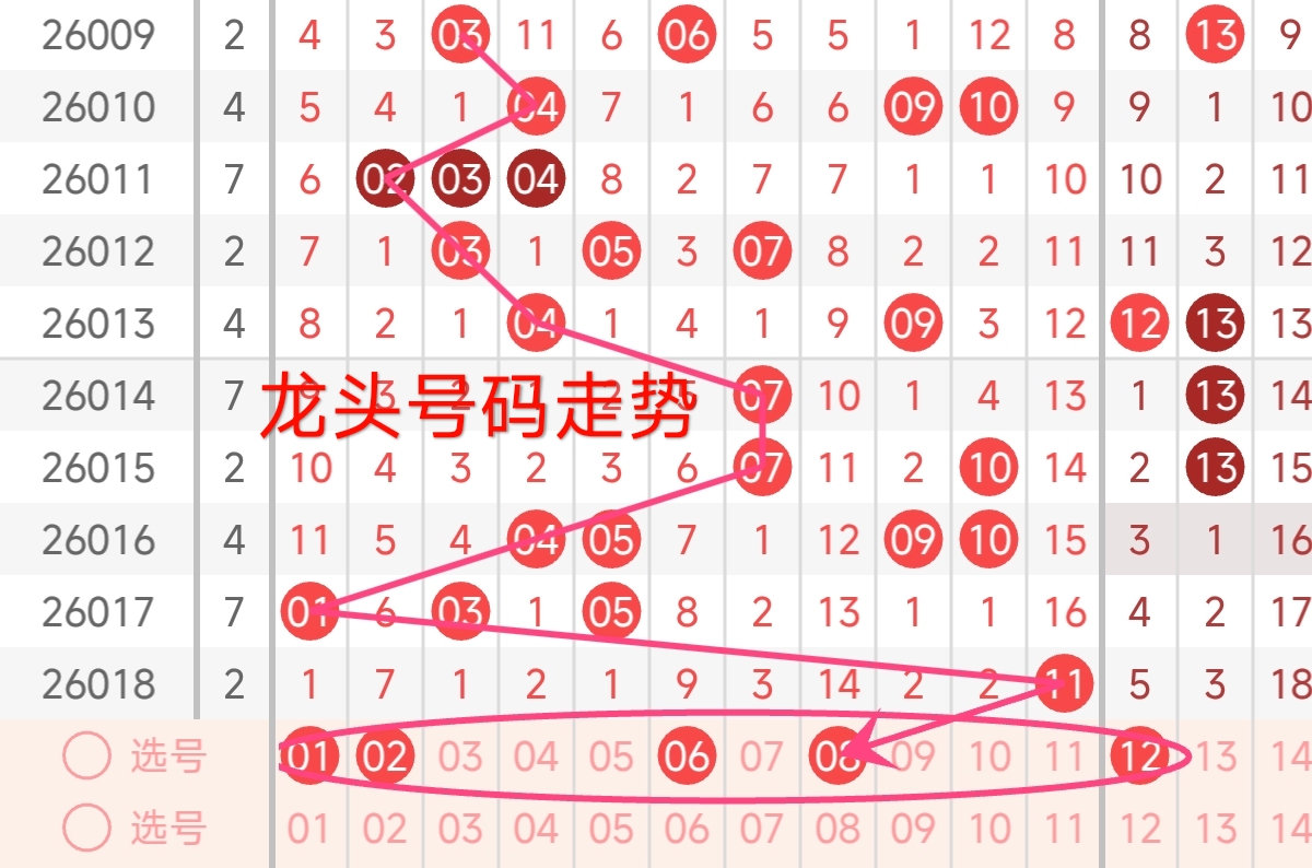 龙头号码走势分析: