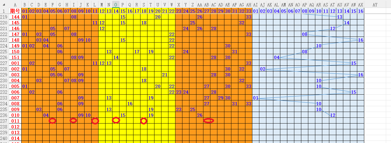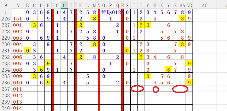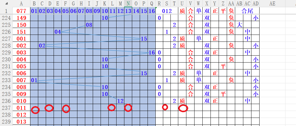 如上图4,012路分析012路,本期重点10路。重点     01 03 05 11 13