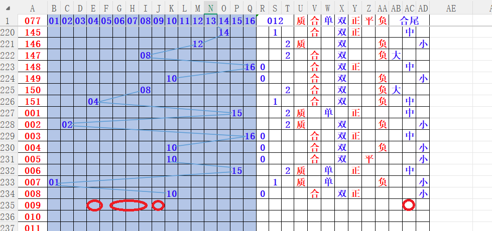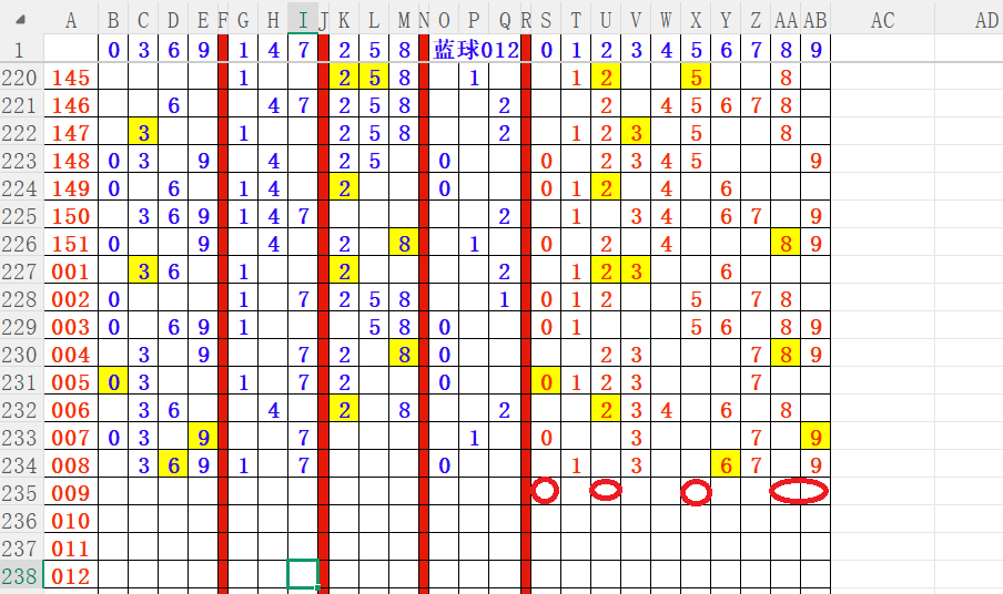 如上图4,012路分析012路,本期重点10路。重点 04 05 06 08 09