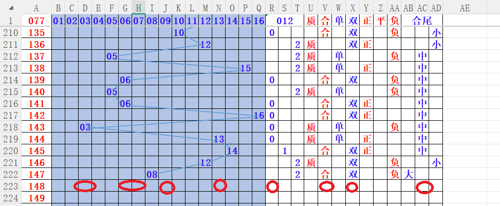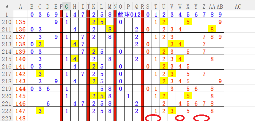 如上图4,012路分析012路,本期重点10路。重点     03  06 07 09 13