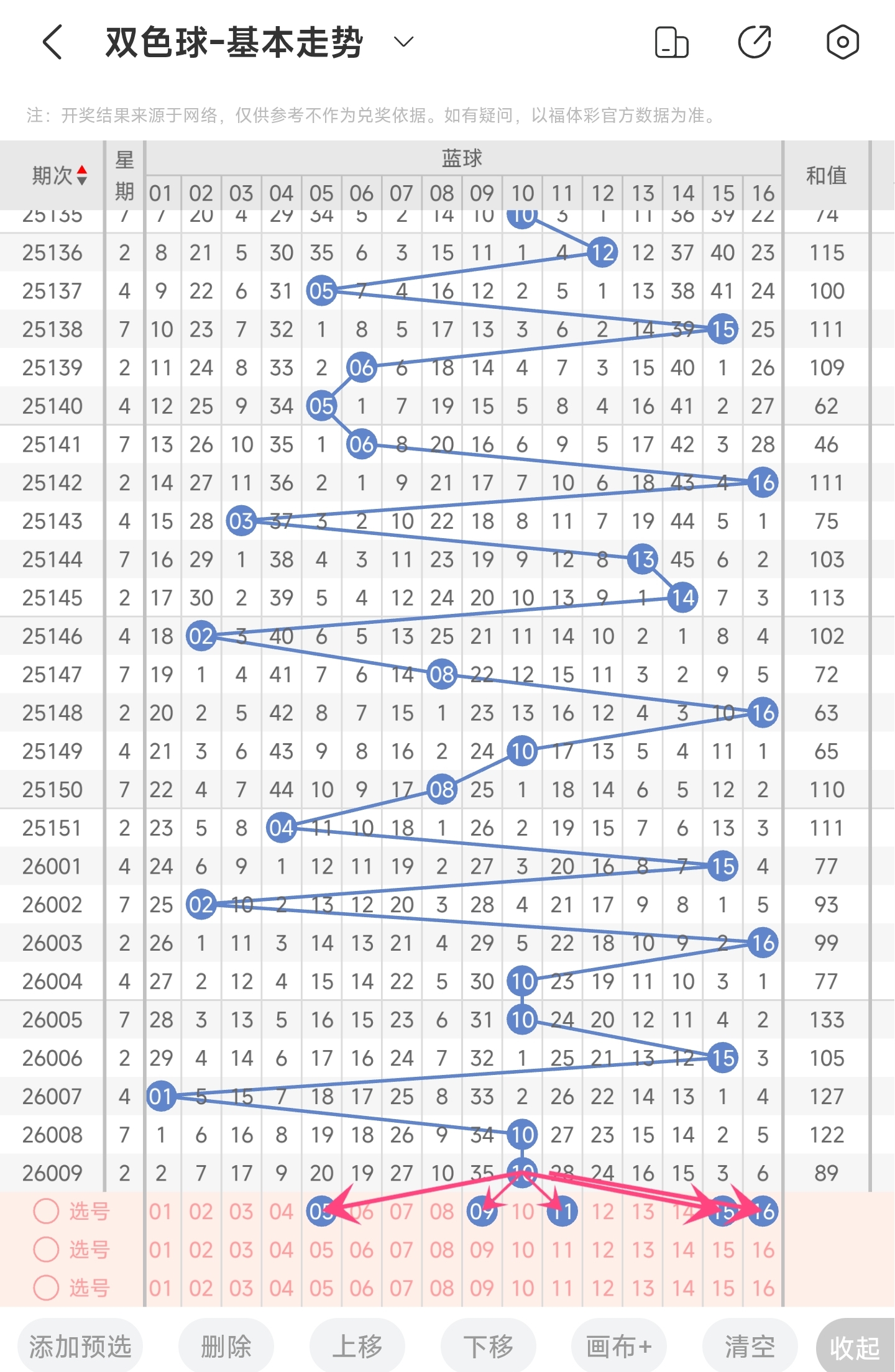 蓝球推荐:5,9,11,15,16。