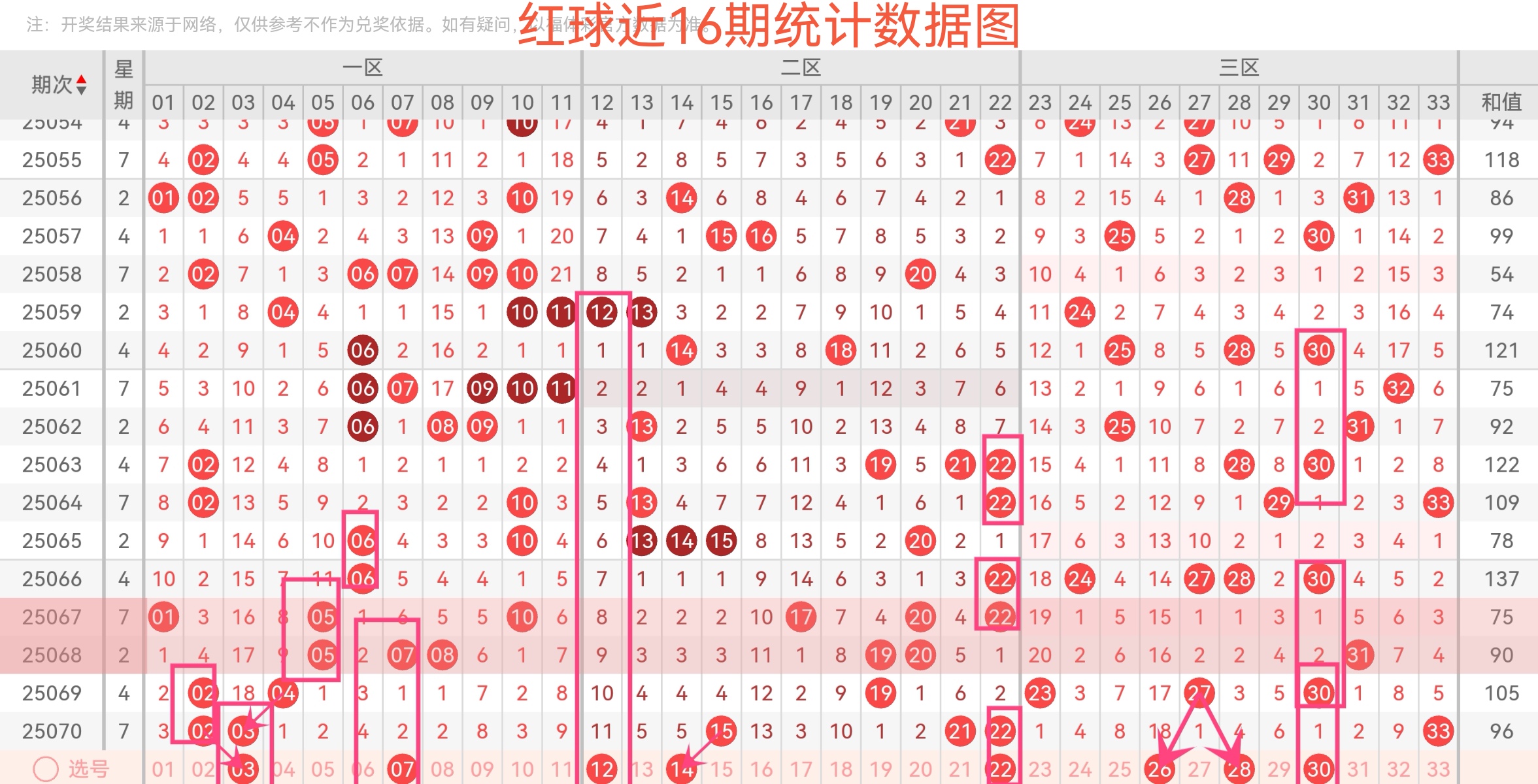 重号:上期无重号,本期防 22、33 重复。三区比(1-11/12-22/23-33):