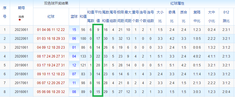 这八期平均值从下到上分别为:15 16 14 20 22 14 17 9,范围在9-22之间有重复,那么这期平均值我们可以考虑15 16 17 20等