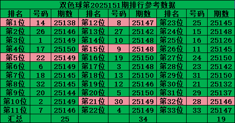 以双色球自开奖以来每个号码出现的次数排位,可分为冷热温三区: