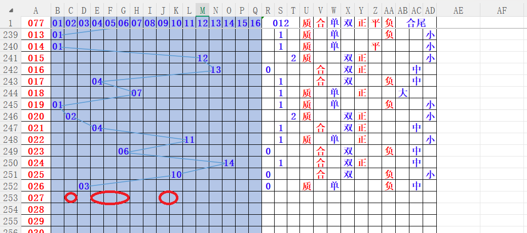 如上图4,012路分析012路,本期重点10路。重点 02 04 05 06 11
