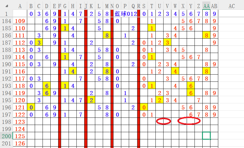 如上图4,012路分析012路,本期重点10路。重点 03 04 05 06 07