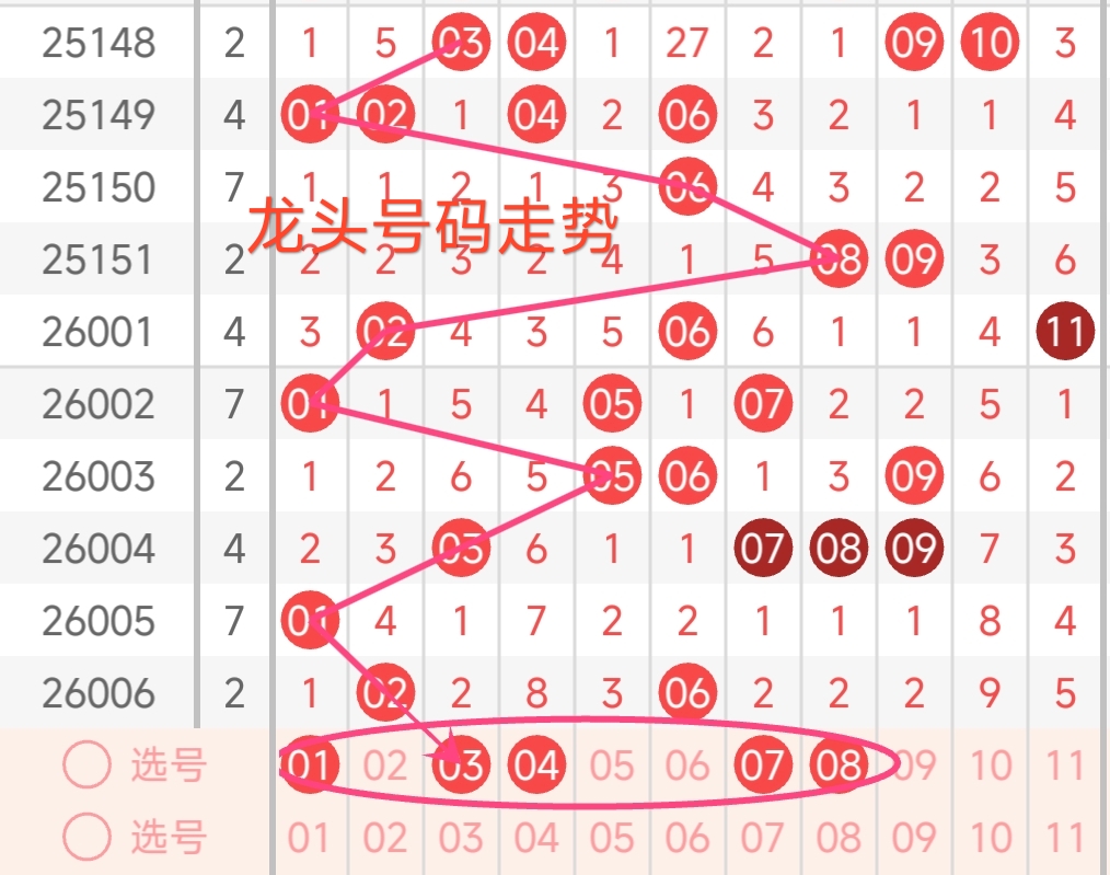 龙头号码走势分析: