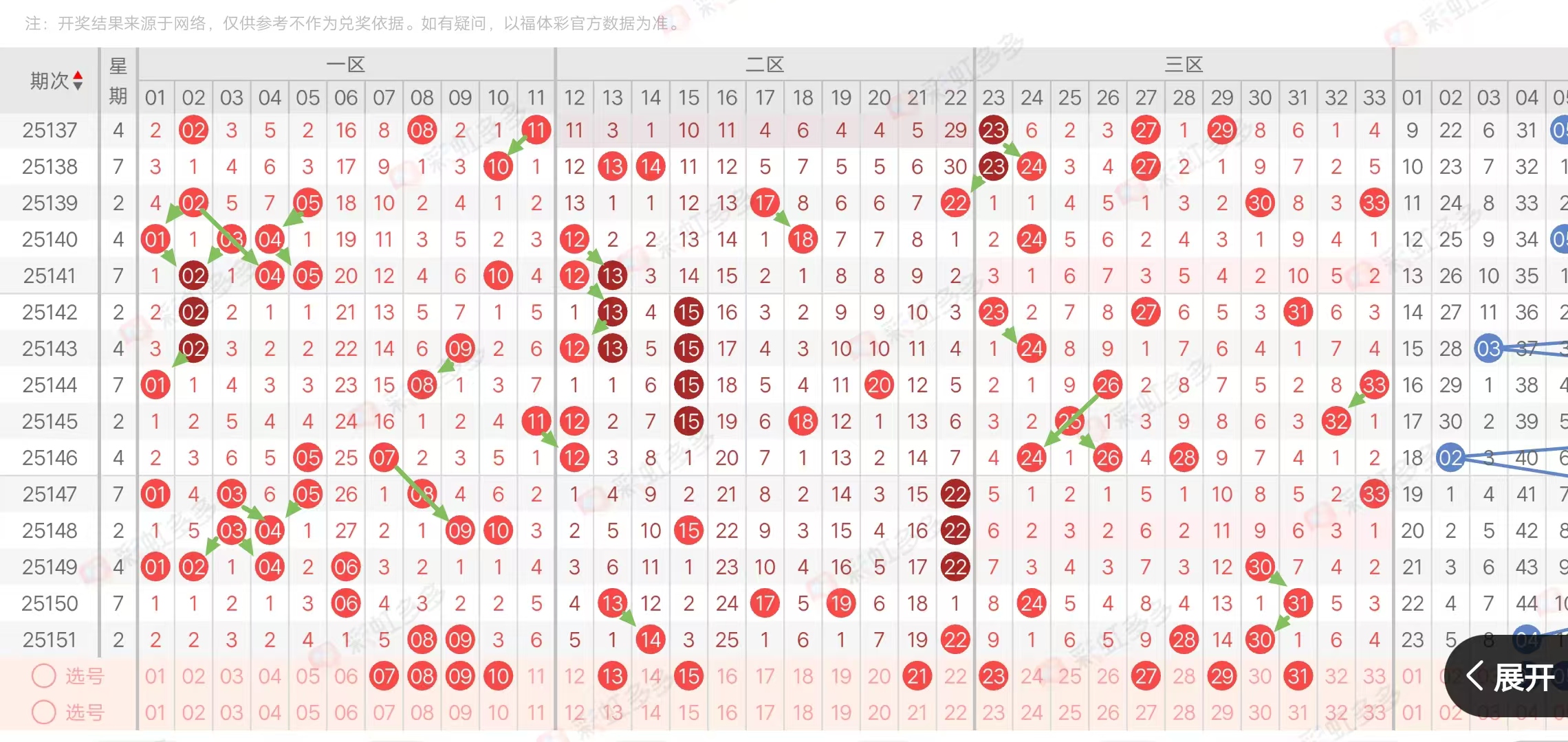 (三区:一区1-11,二区12-22,三区23-33)上期三区比2:2:2