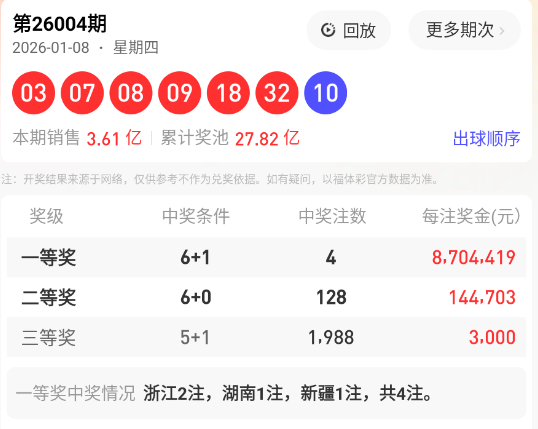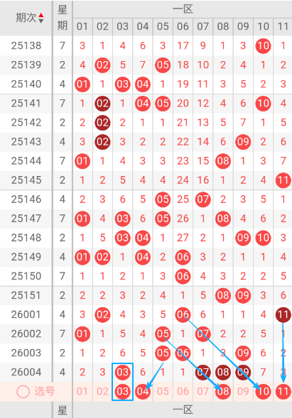 上期回顾:双色球004期开出红球号码为: