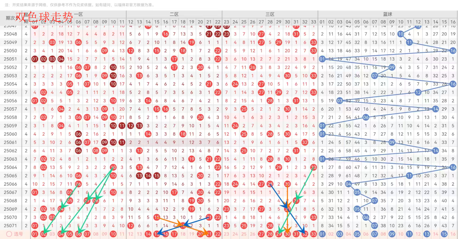 蓝球区,感觉要顺势而为了,最近4-7区势头太猛了,振幅都是1-2跨以内,本期会不会继续笑振幅呢?从最近的形态看,个人比较....(留给会员文章吧);