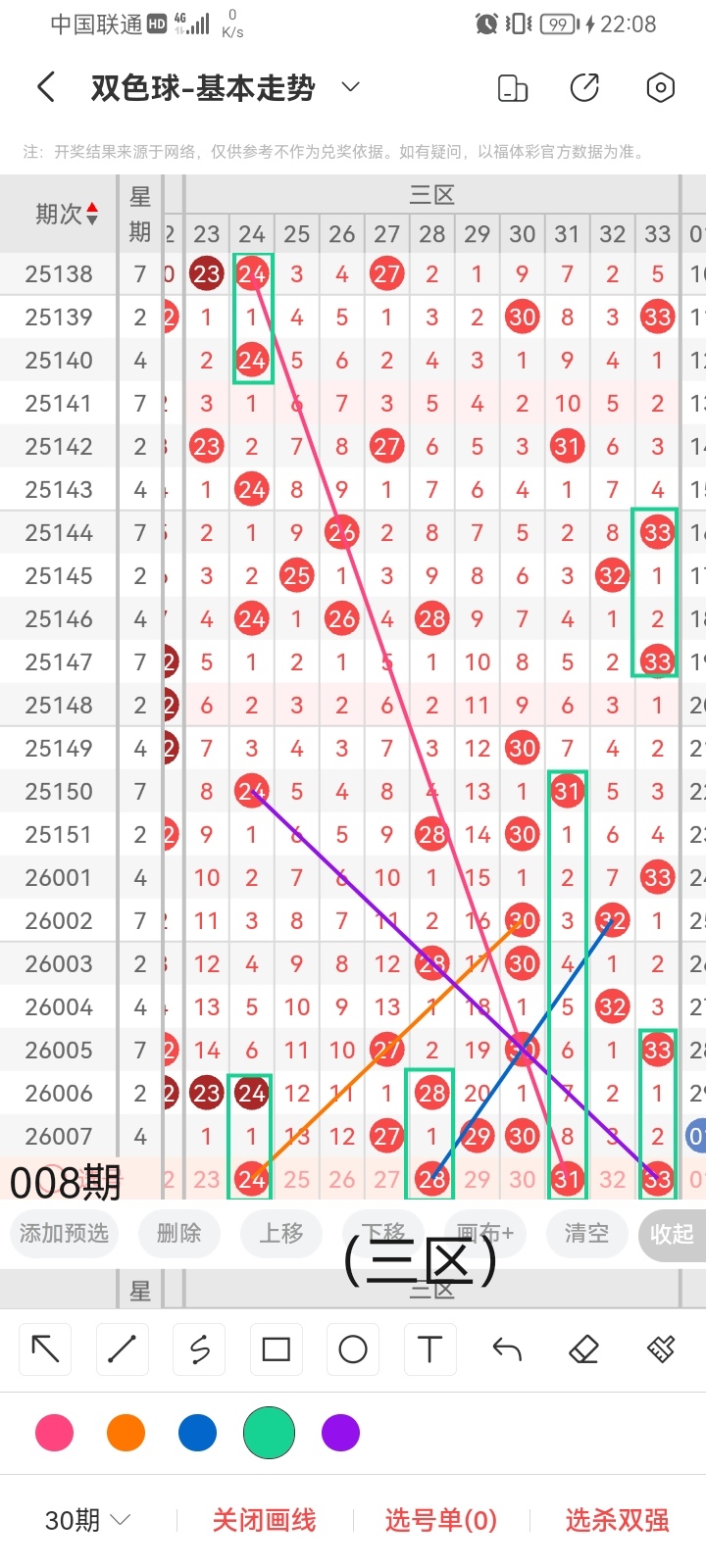 通过以上对上期的简单回顾,下面进入双色球第2026008期(下面简称本期)的选号分析: