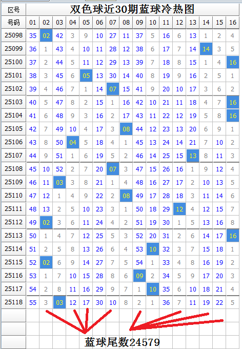 蓝球本期有热蓝7枚,冷蓝9枚,蓝球冷热码数量稍多。上期开出热蓝,由于近期蓝球冷热交替开出规律不明显,本期蓝球冷热难定。