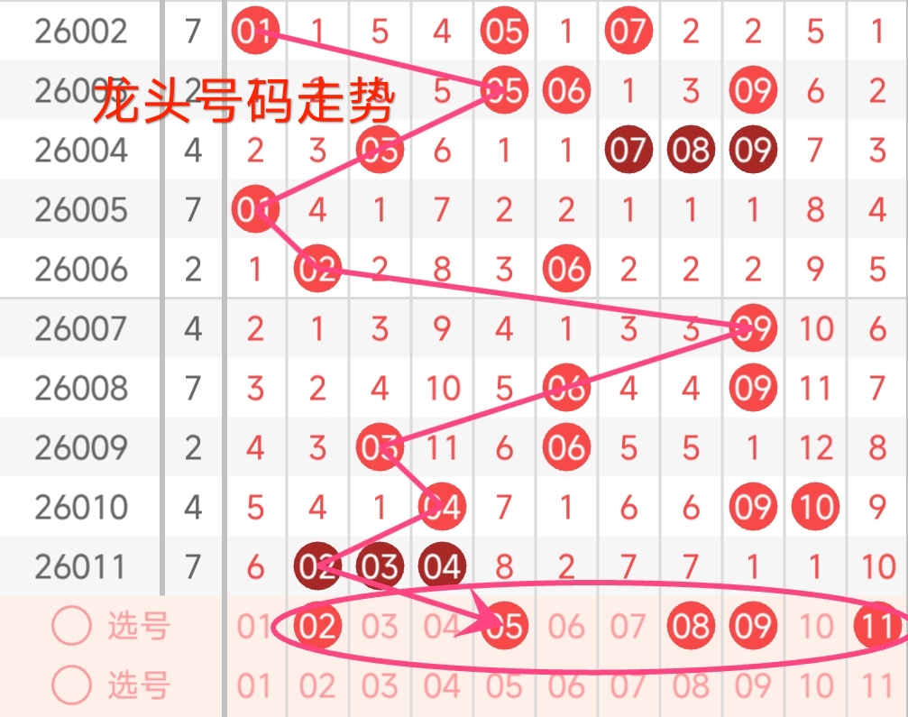 上期龙头号码为02,振幅下降了2点,开出偶数号码。从近期龙头号码走势来看,近期龙头号码波动频繁。上期龙头是02,在近期的龙头号码中,01 - 09出现的频率较高。从走势上看,龙头号码有逐渐上升的趋势,但不会上升太快,预计本期龙头号码关注01 - 11区间。本期龙头号码还需关注遗漏值较高的号码,本期有望龙头号码热出的区域。综合考虑,本期龙头号码可重点关注02、05、08、09、11。
