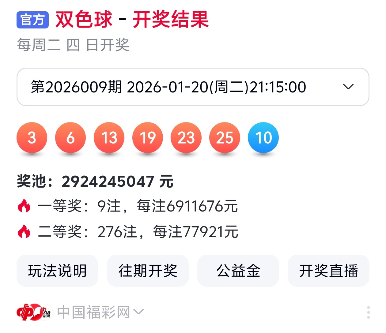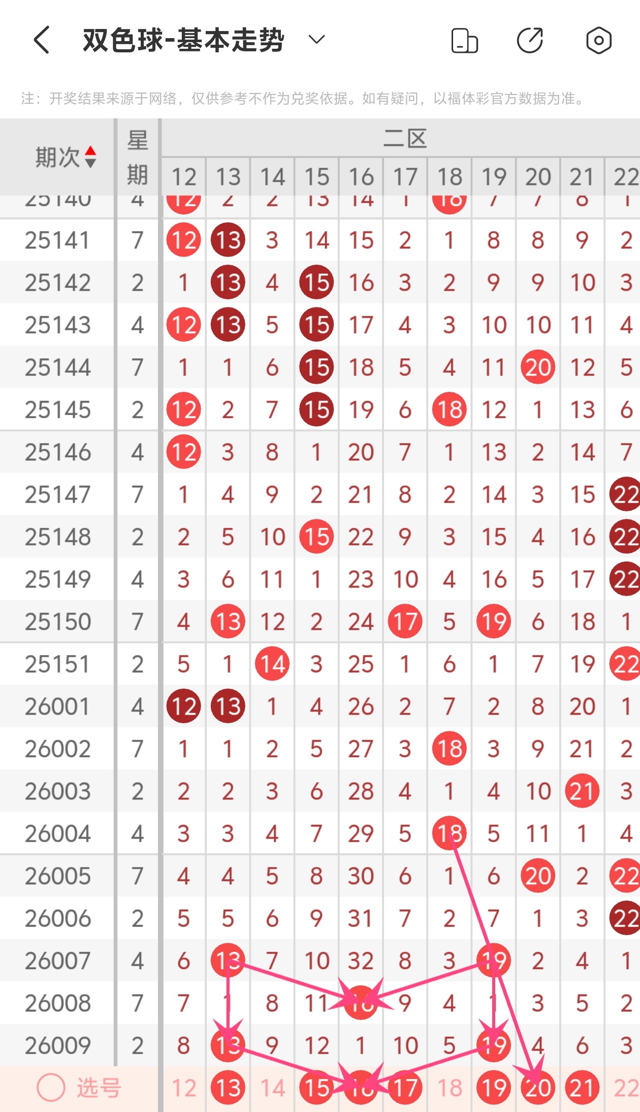 下面是我对2026010期福彩双色球的分析和预判,希望通过我的分析能让大家今晚大红!福彩双色球上期开奖号码如下图: