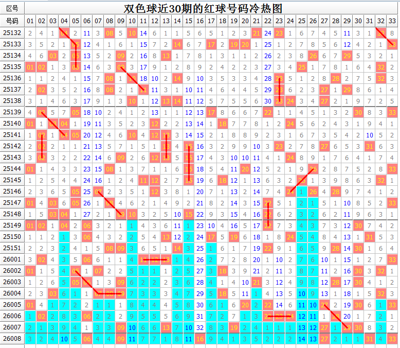 以下是双色球最近7期(26002-26008期)的推荐情况,更多期数的请参考往期文章: