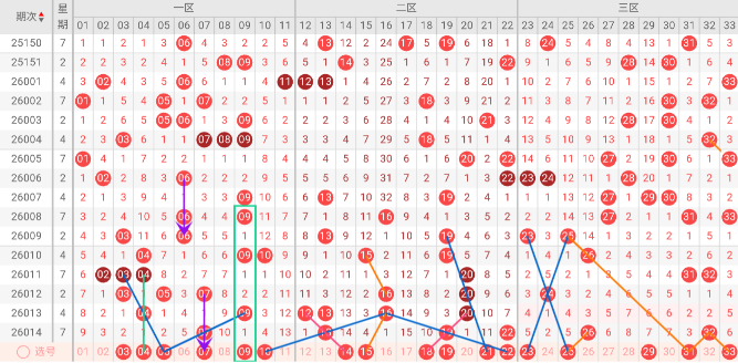 根据以上特点,我们对双色球第26015期进行如下分析: