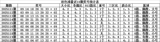 上期奇偶比为3:3,奇偶红球走势相当,近10期奇偶比为27:33,偶数开出比例较高,其