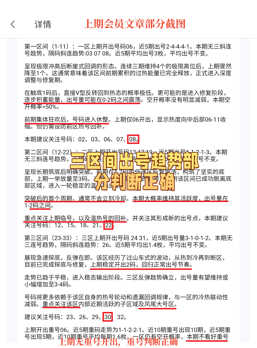 会员文章每个区间给出更详细的分析,说明整体走势的最新趋势,重号和连号均有推荐。