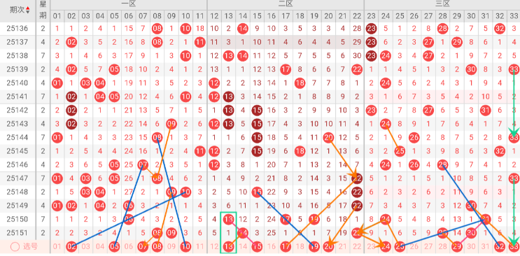 呈现触底反弹的明确信号。从3码高点回落,经历空开的冰点后,近两期稳定在2码,表明该区热度已恢复至正常水平。在连续均衡后,本期具备热度升级的潜力~,出号量有望维持2码或增至3码。需留意~,本期~,建议关注号码:24、25、29、32、33。