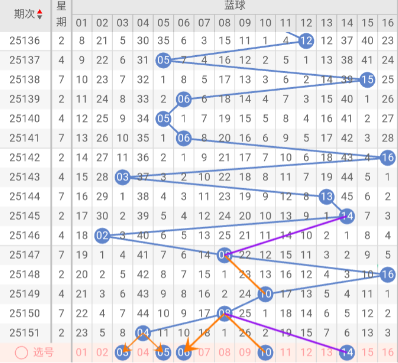 结合出号走势,本期蓝球推荐关注号码:03、05、06、10、14。