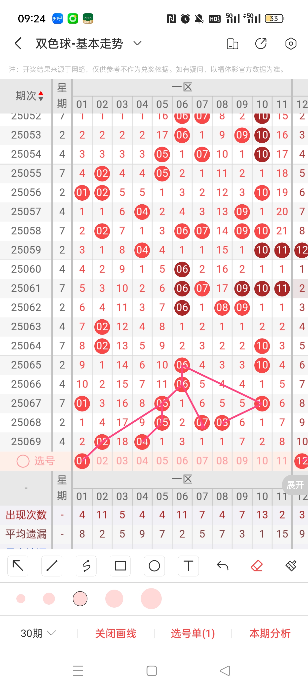 一区(1-11):近67期本区邻孤传22邻67孤7传,孤号热度高,本期着重邻传。近67期本区012路30:32:34,2路热度高,本期着重0/1路。1已遗漏2期,与2之间呈现向左遗漏递减态势,需防。