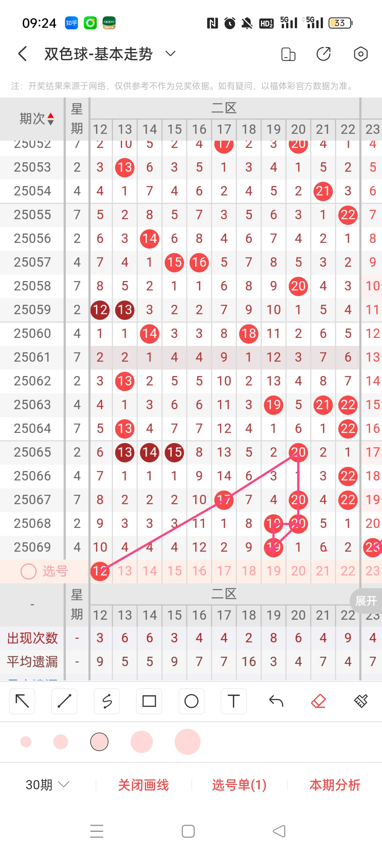 25069期开奖结果:2、4、19、23、27、30+5,奇偶比3:3,大小比3:3,和值105,012路2:2:2,邻孤传0邻5孤1传,无同尾号,传号19,无连号。总结完毕,下面开始本期分析。