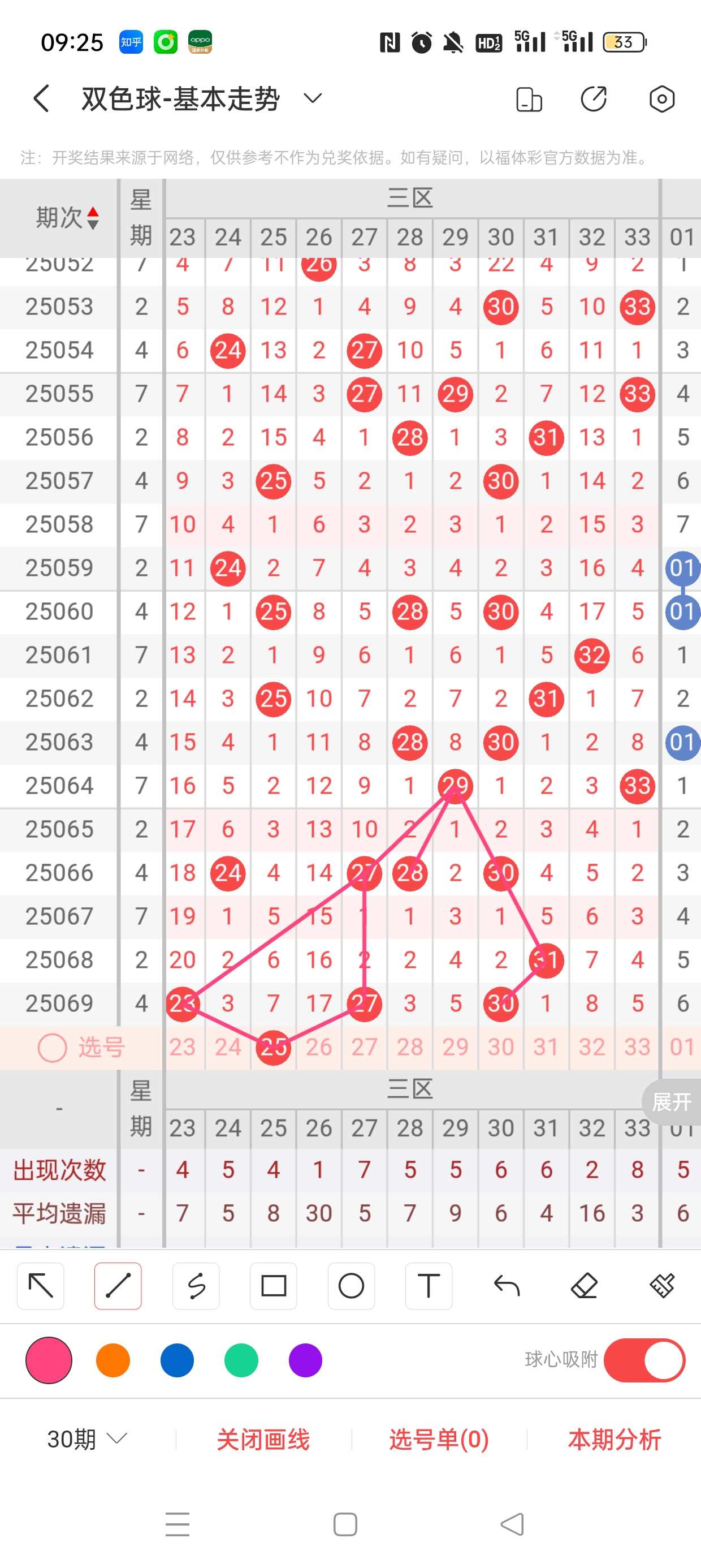 三区(23-33)近67期本区邻孤传18邻73孤6传,孤号热度高,本期着重邻传。近67期本区012路45:25:34,0/2路热度高,本着重1路。25已遗漏7期,与27之间呈现向左遗漏递减态势,需防。