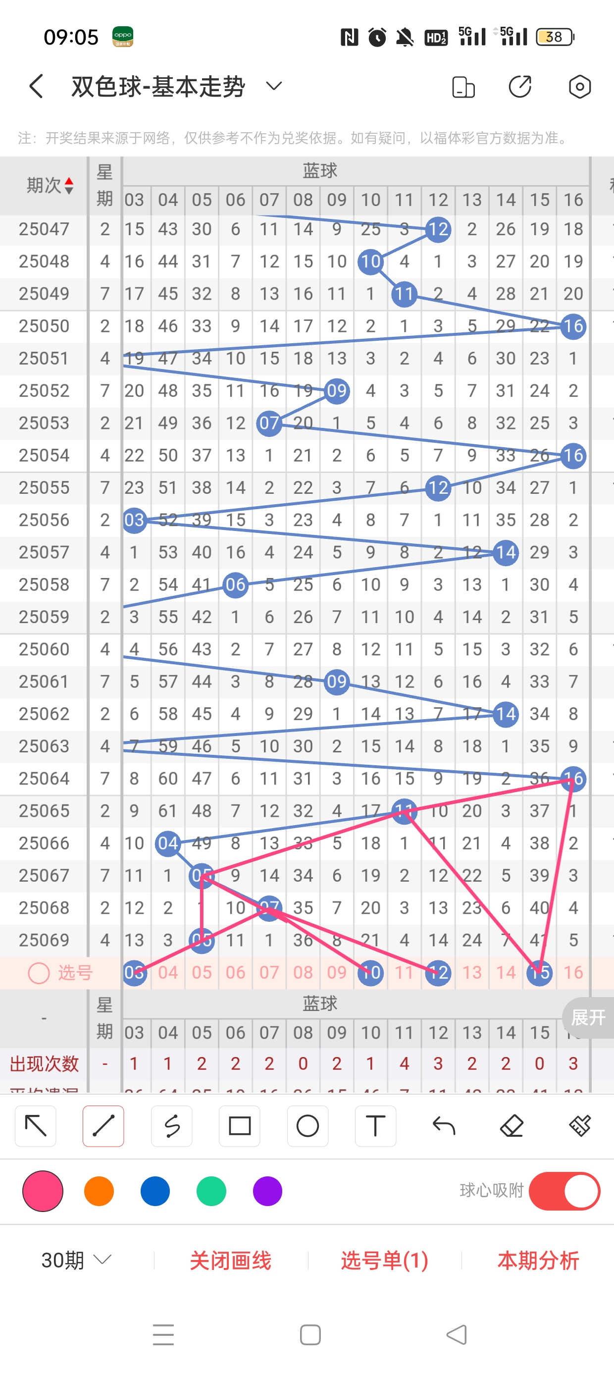 后区(1-16)近67期本区012路12:20:37,1/2路热度高,本期着重0路。3已遗漏13期,与5之间呈现向左遗漏递减态势,需防。10、12分别遗漏21期、14期,两者与7之间呈现向右遗漏递减态势,需防。15已遗漏41期,与16之间呈现向左遗漏递减态势,需防。