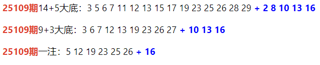 25110期9+3大底:5 10 15 16 22 23 24 27 28 + 5 9 13
