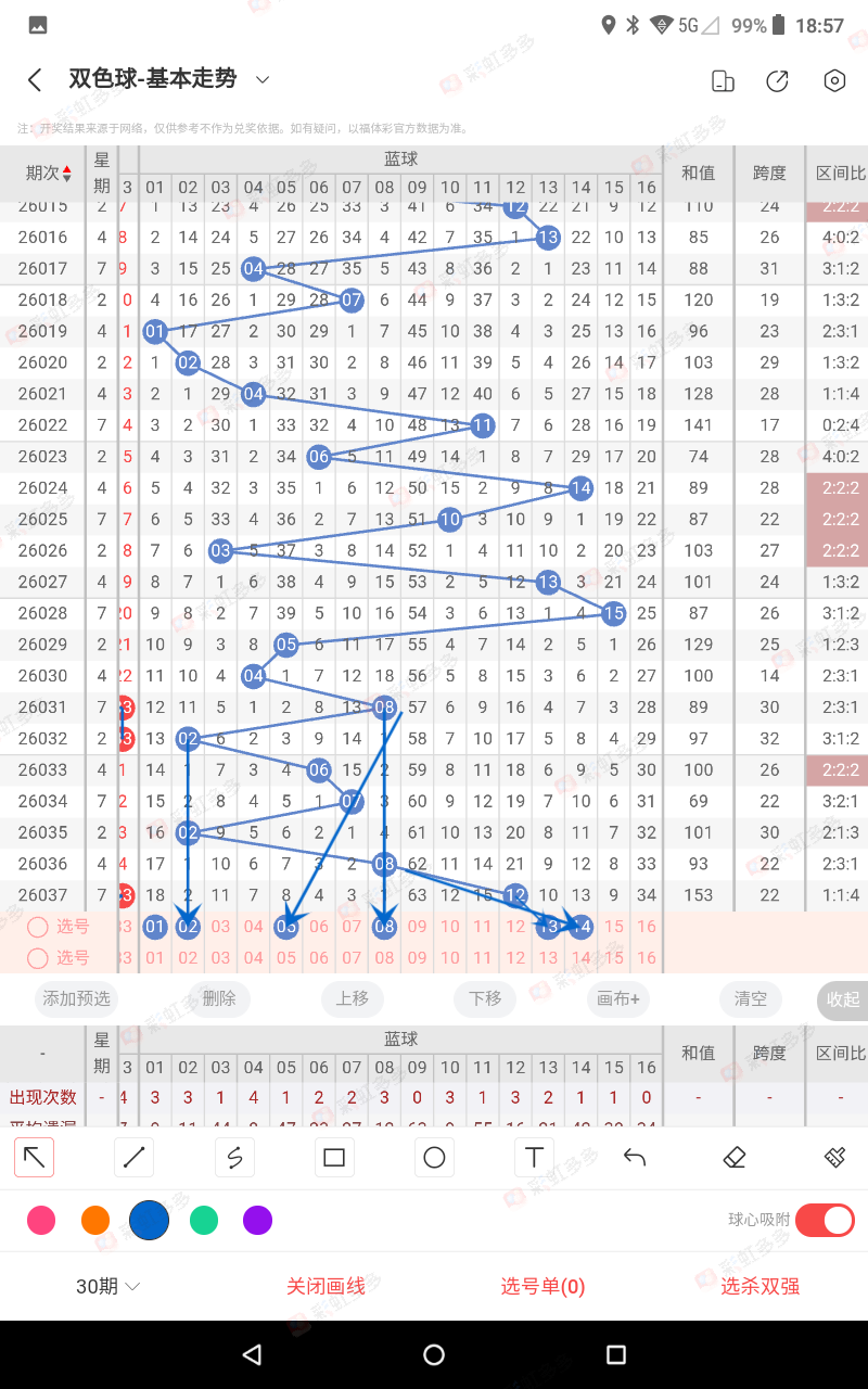 比如,037期蓝12号,036期蓝8号(属2路)那我们这期要杀的蓝号就是12+2=14大16,减16,14为本期杀号,020期错,防三连错