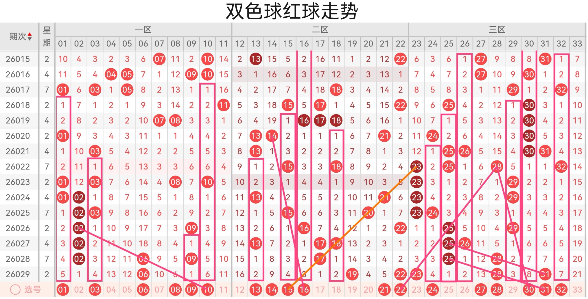 双色球第26030期基本走势分析如下: